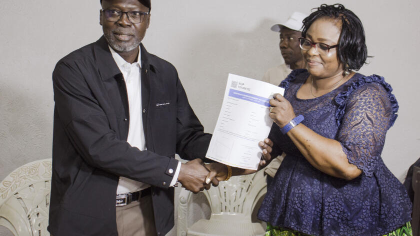 Sur le terrain, les autorités locales procèdent à la remise officielle des Certificats d’Enregistrement au Cadastre (CEC), en présence des partenaires financiers.